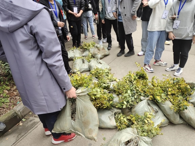 活动伊始,同学们首先去领取铁锹和小树苗,同时,为了保证高效地完成植树任务,对人员进行分组和铁锹分配,随后大家健步走向院系分配的植树区域开始植树活动,共计植树五百棵。