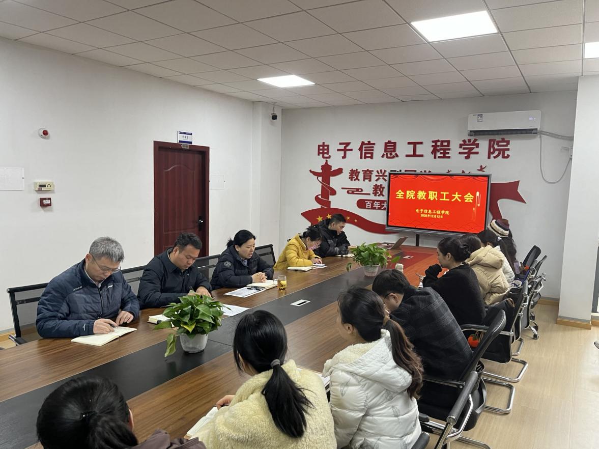 (通讯员:王宇浩)2025年12月12日中午,电子信息工程学院在学院会议室召开全体教职工大会,学院党政领导班子成员及全体教职工参加会议。学院院长邓奕教授主持会议。