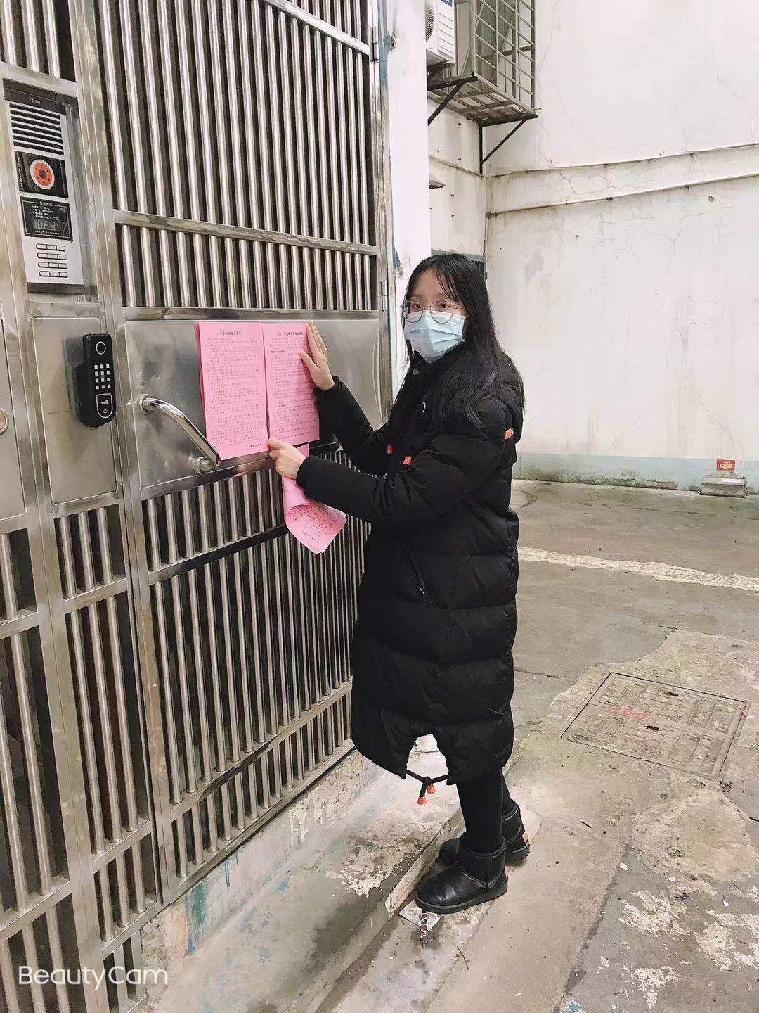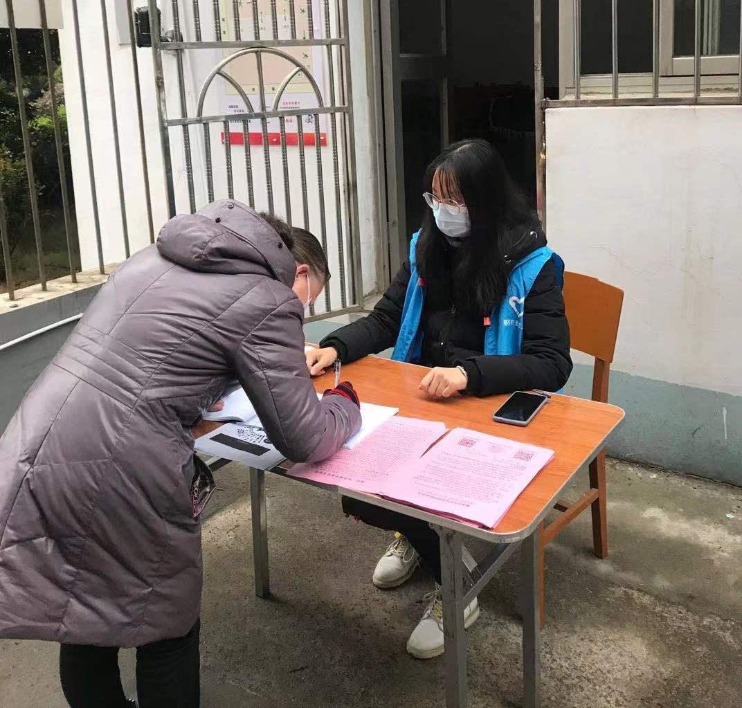 陈姝颖,女,2020级电气一班学生,在湖北省鄂州市鄂城区市计生委宿舍出入口防疫点卡口协助政府做好排查登记体温测量等工作,并向居民发放防控宣传资料,督促居民正确佩戴好口罩。