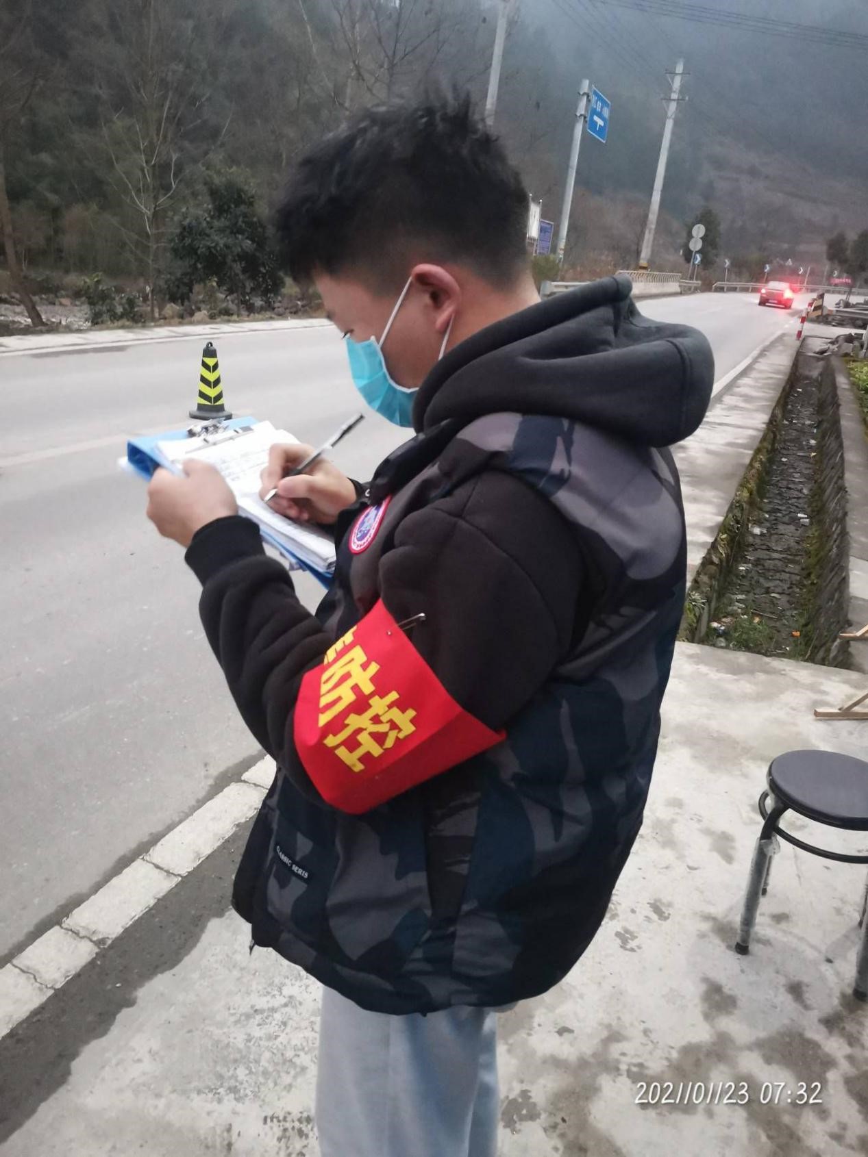 曹一哲,男,2020级电信一班学生,在湖北省襄阳区黄集镇薛集做一名普通的志愿者,对进村车辆进行体温排查。