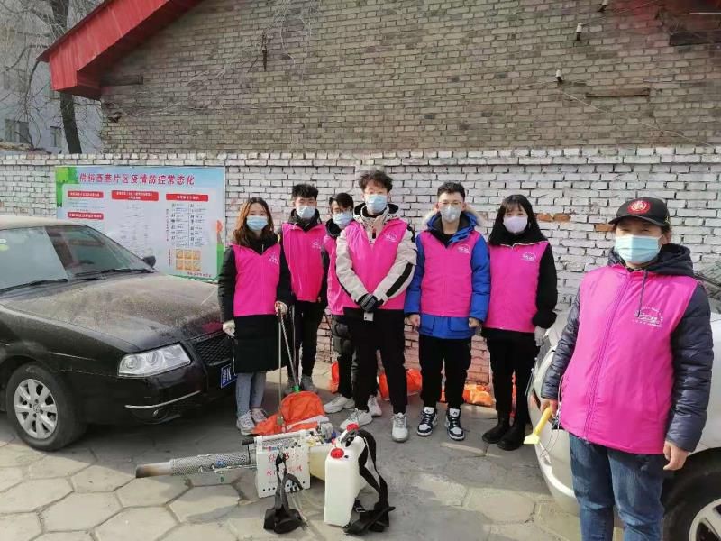 朱家林,男,2020级电信二班学生,于山西省晋中市寿阳县进行社区疫情防控工作,帮助居民清扫大街以及消毒。
