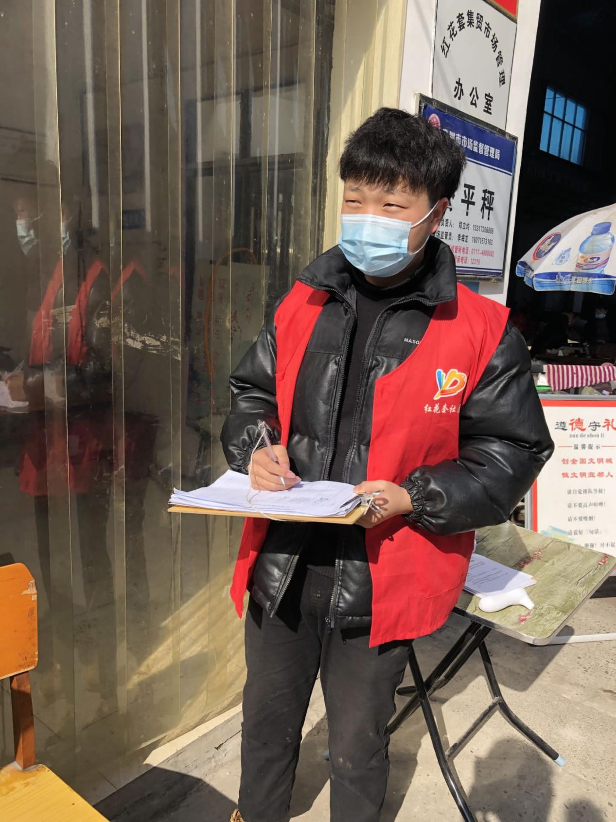 马龙涛,男,2018级电气一班学生,在山东省德州市徐园子乡徐园子村做志愿者,帮助村民做好排查登记测量体温等工作。