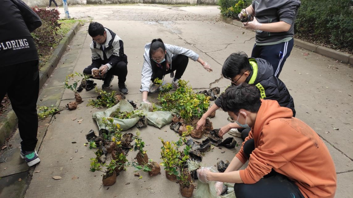 在植树过程中,同学们有序分工、团结协作,认真完成铲土挖坑、扶植树苗、夯实新土等一道道步骤,将树苗栽植在泥土中。与此同时,为了保证树苗的成活率吕书记给同学们科普了植树知识,要深挖坑、距离保持好、多培土,同学们干劲十足,将一棵棵充满生机和希望的小树苗植入校园的土地里,并认真地浇上了一桶桶春天的甘露。